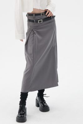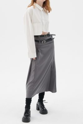 • Tucked pleat skirt with two belts lines